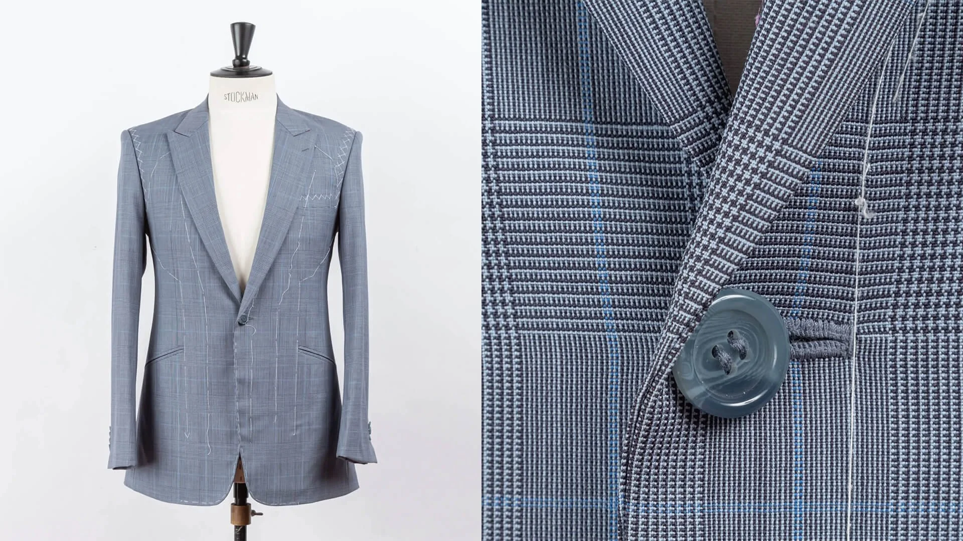 De kleur staalblauw voegt een eigentijds element toe aan het klassieke Blue Glen Plaid met Blue Windowpane motief. Deze moderne tint geeft het pak een frisse uitstraling.