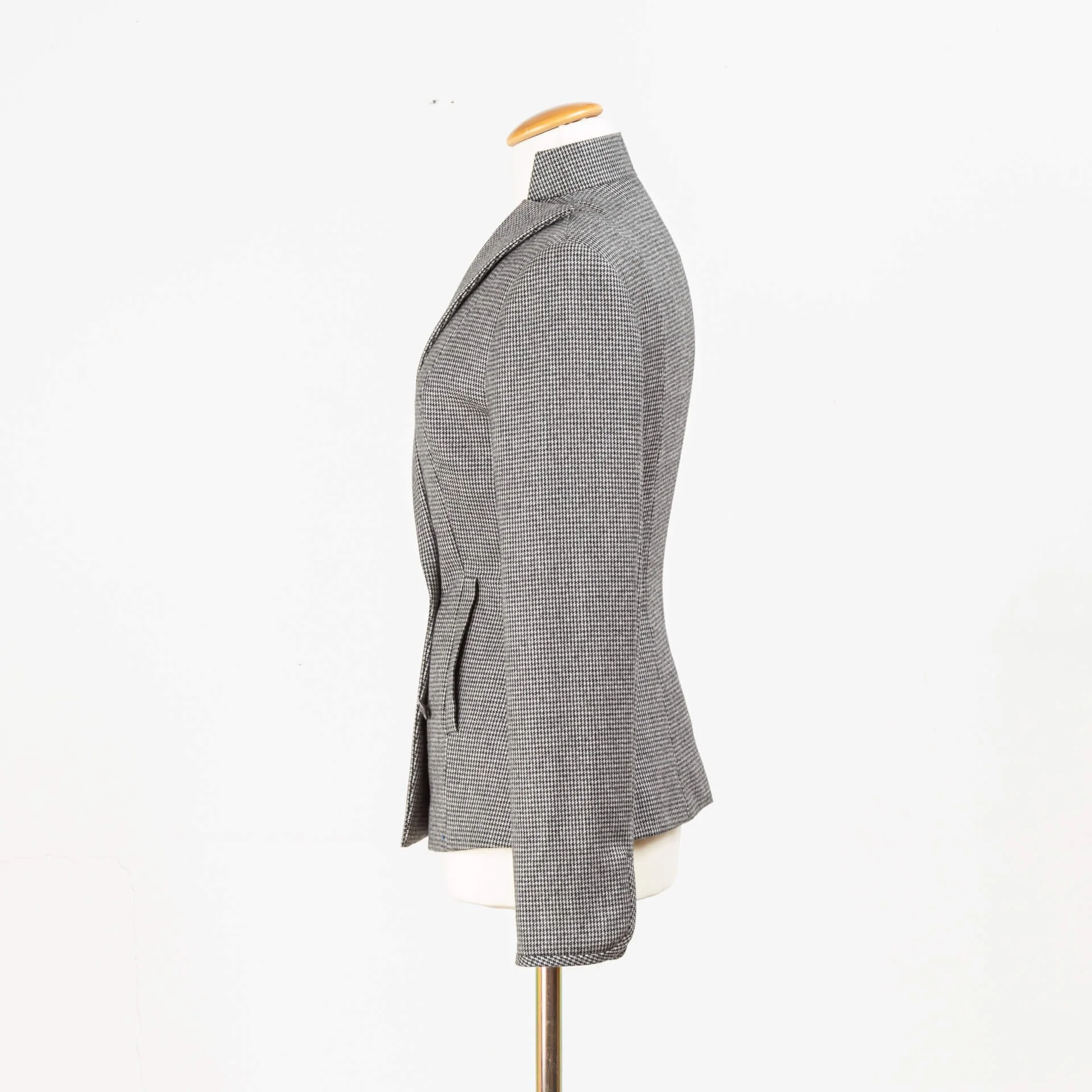 Een uniek colbert met Franse flair gemaakt in een grijze Pied de Poule stof.
