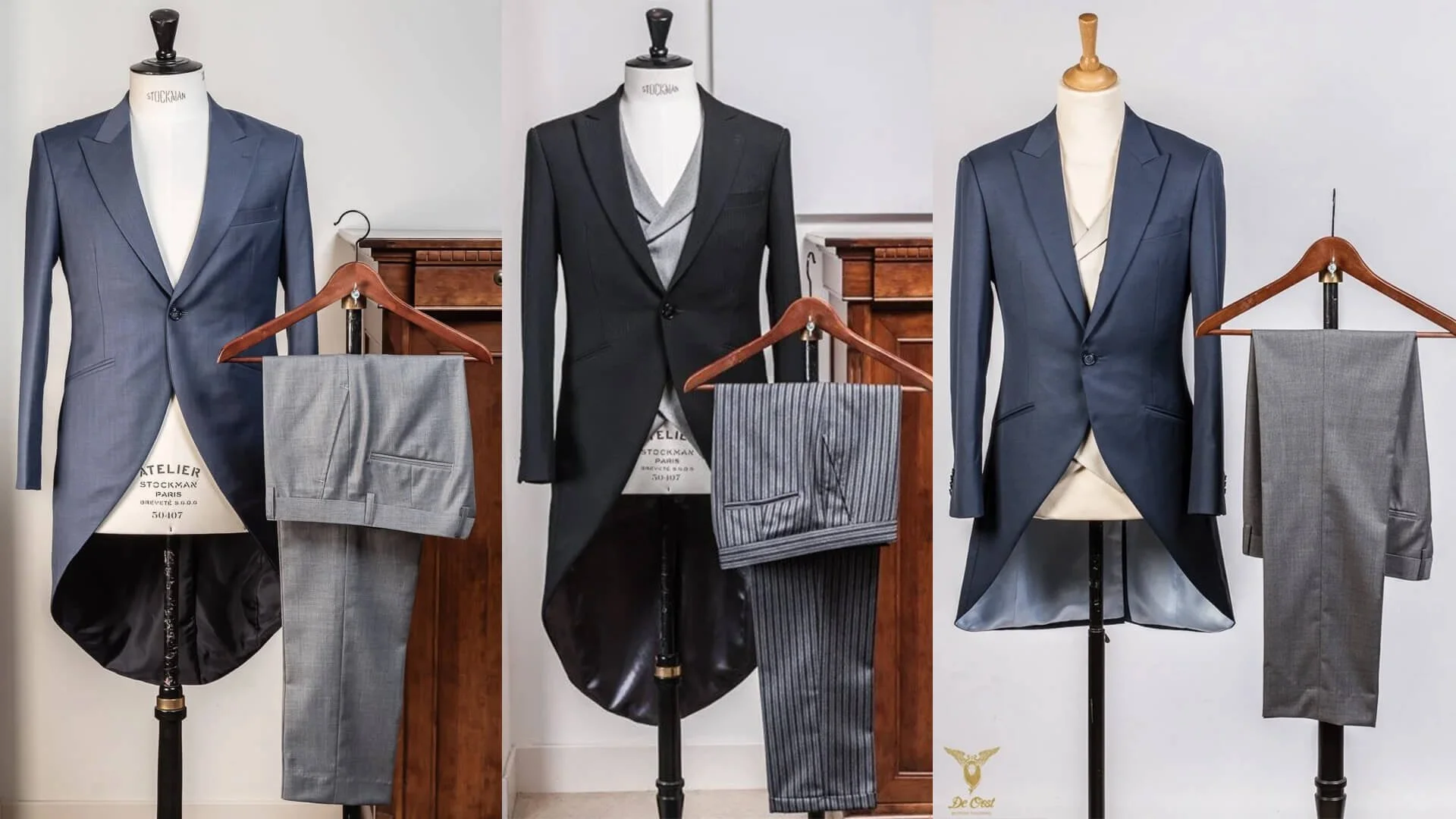 Lange panden aan de achterkant: Het jacquet heeft een verlengde achterkant die elegant achter de drager uitloopt, terwijl de voorkant kort is. Dit zorgt voor een bijzondere balans tussen traditioneel en verfijnd.