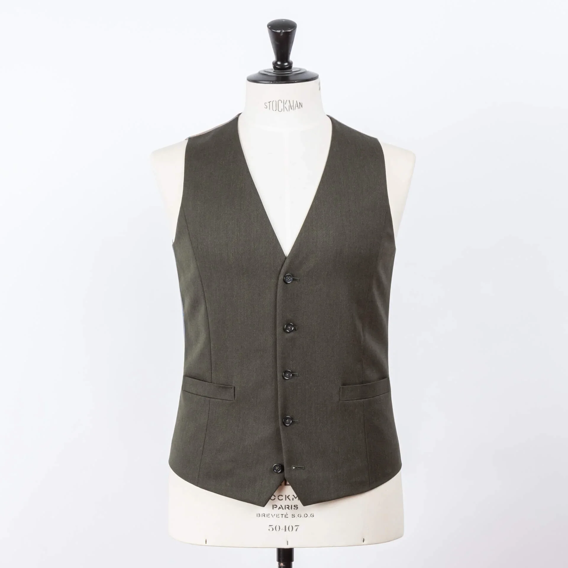 Dit gilet heeft geen revers (lapels), wat het een cleane, moderne uitstraling geeft. Het is formeel genoeg voor een bruiloft maar niet zo theatraal als een double-breasted model met revers. Het is de stijl die je het vaakst ziet in klassiek Brits maatwerk: functioneel, elegant, onopvallend.