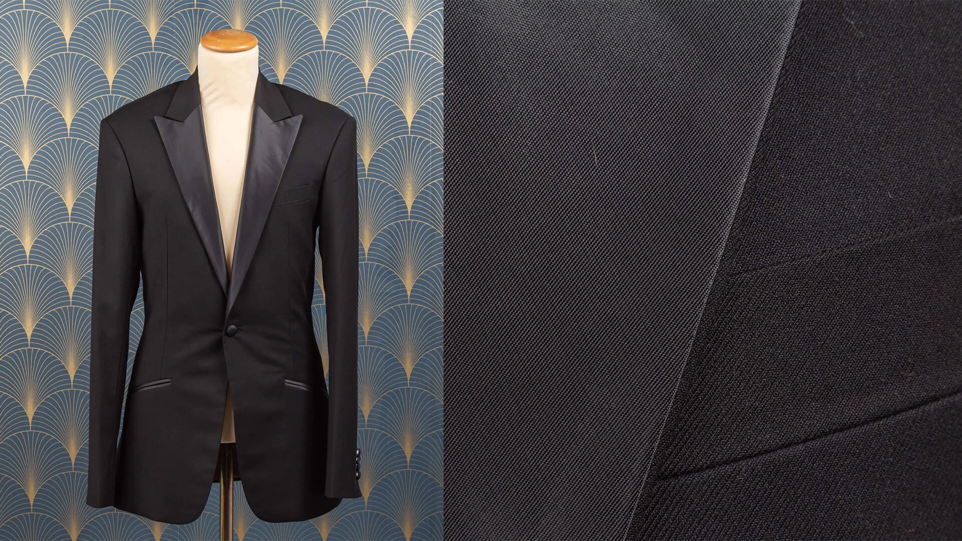 De stof, afkomstig van Holland & Sherry uit hun BLACK TIE collectie, is van het beste zwarte barathea. Barathea is een fijn geweven textiel met een lichte textuur en een subtiele kruisstructuur, waardoor het een populaire keuze is voor smokings.