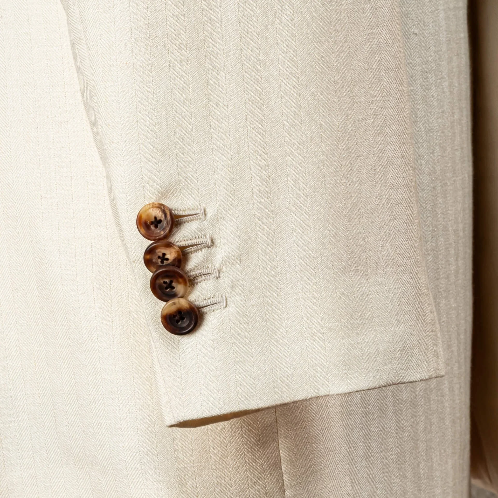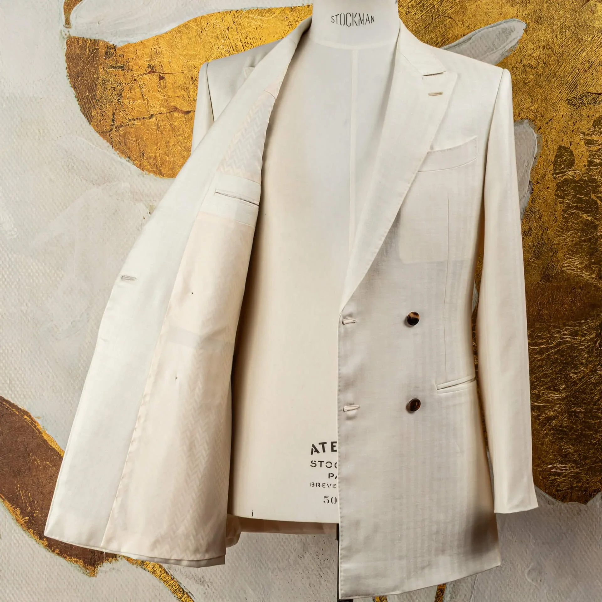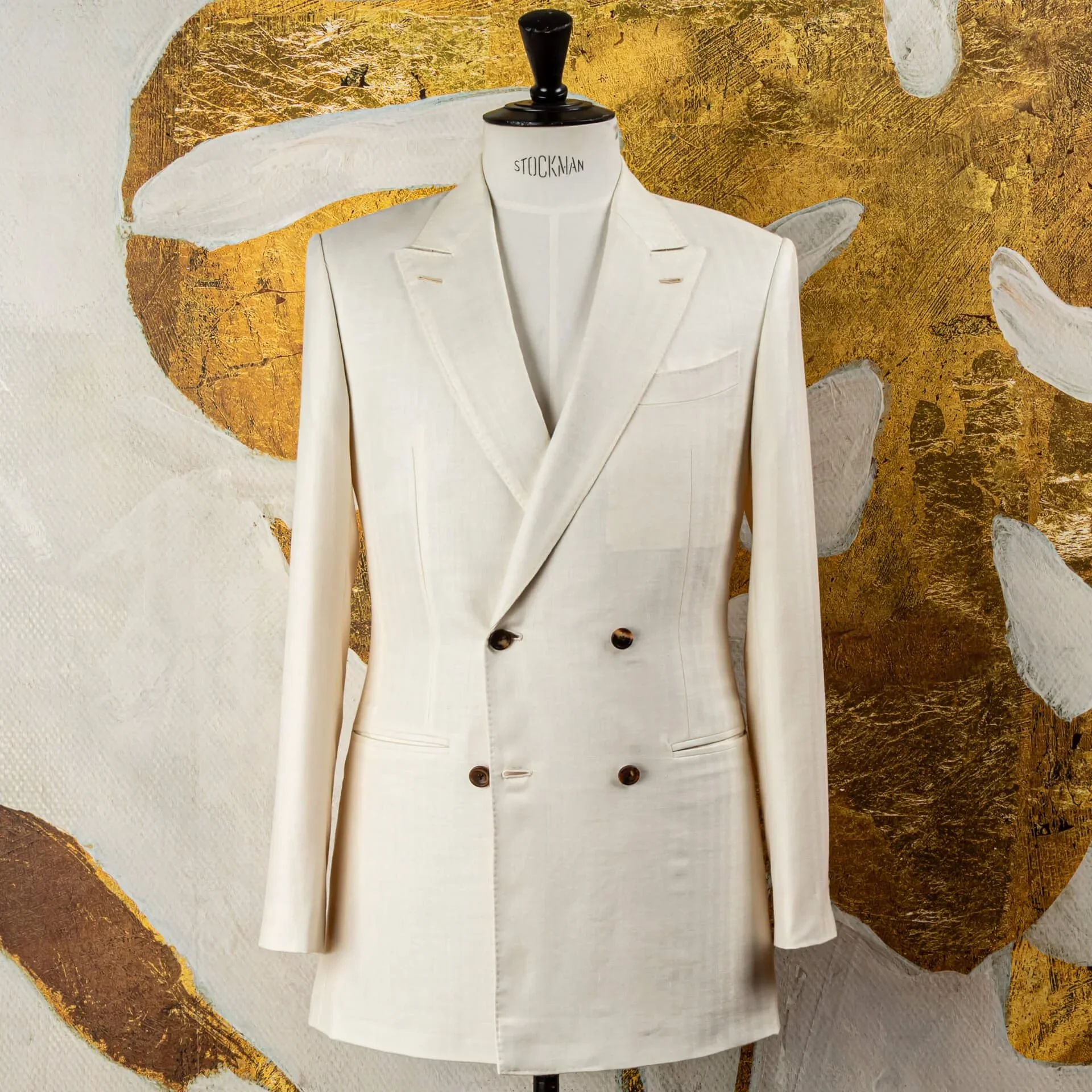Off-White Double-Breasted Trouwpak in Wol, Linnen en Zijde