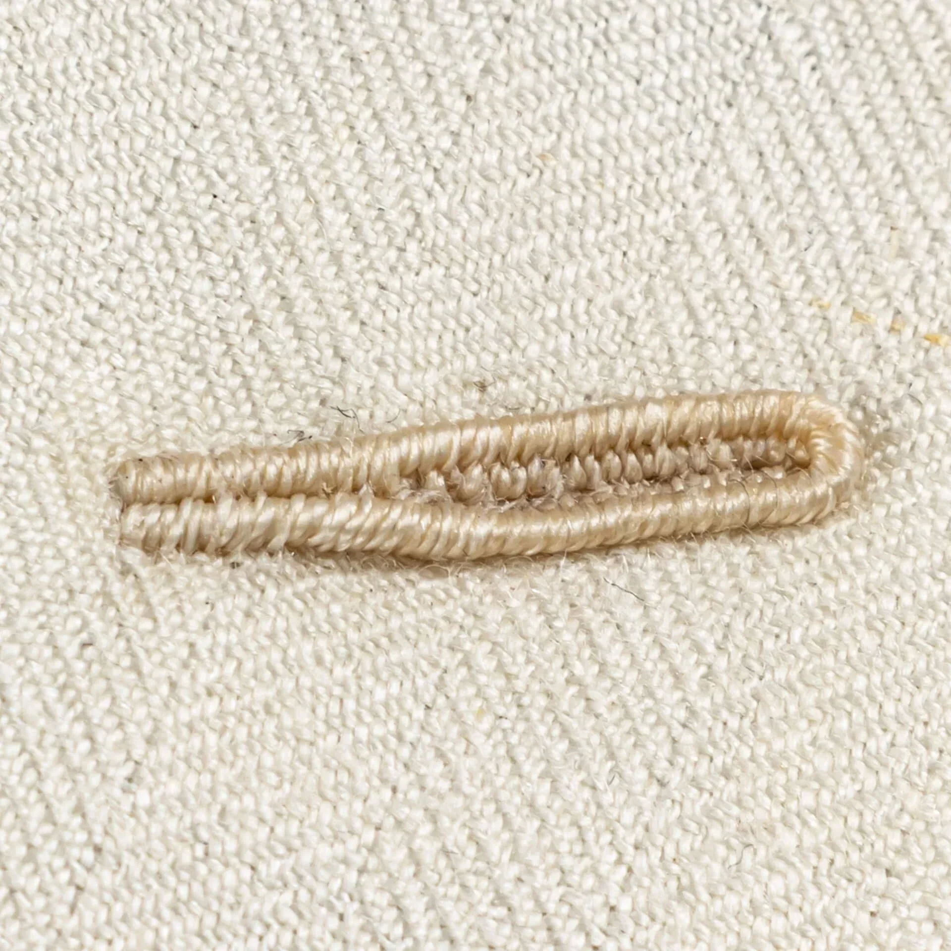 Op de revers zitten handgemaakte Milanese knoopsgaten, een traditie uit de 16de eeuw die verder populair is geworden door Italiaanse kleermakers in Parijs. Ze zijn niet functioneel, maar ze zijn bovenal een teken van ambacht. Een detail dat je ziet als je het weet te zoeken, dat niet schreeuwt maar wel aanwezig is.