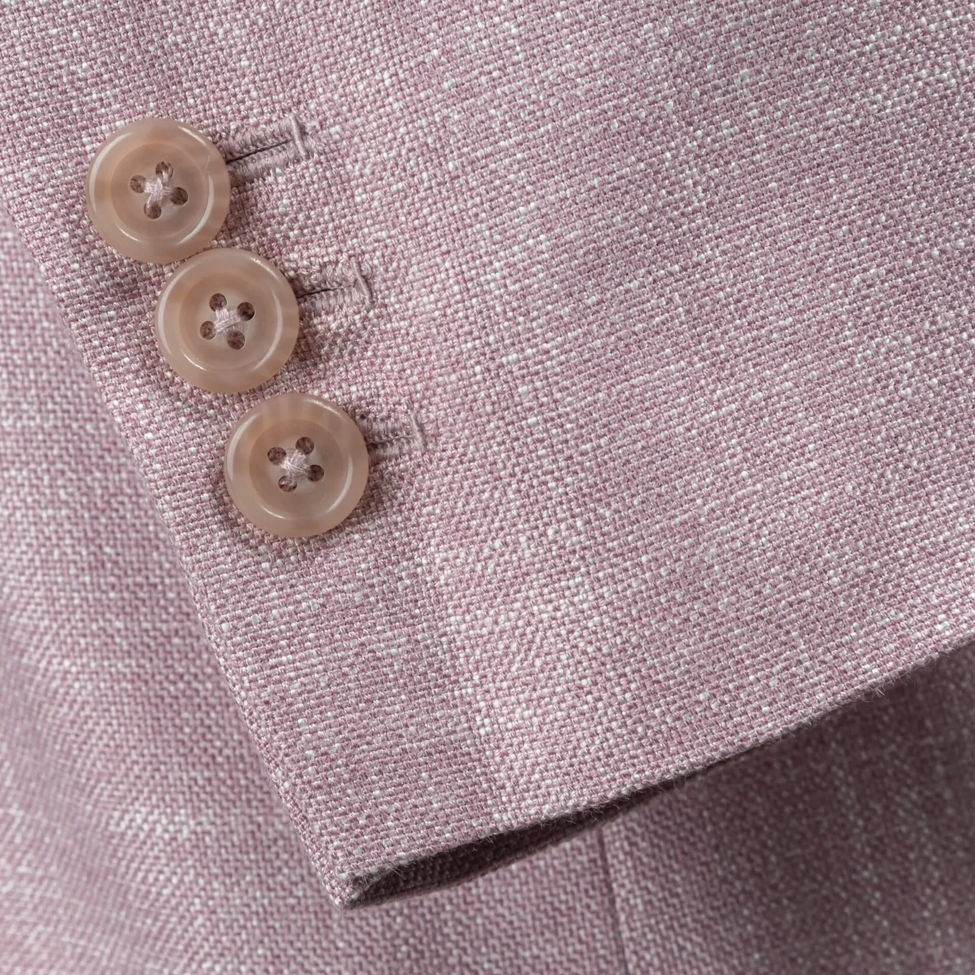 Weverij: Huddersfield Fine Worsteds Collectie: Bamboo - Italian Jacketing Gewicht: 250 - 280 gram Kleur: Colbert & broek: Roze - Kleur Gilet: Wit Weefsel: Twill Design: Plain